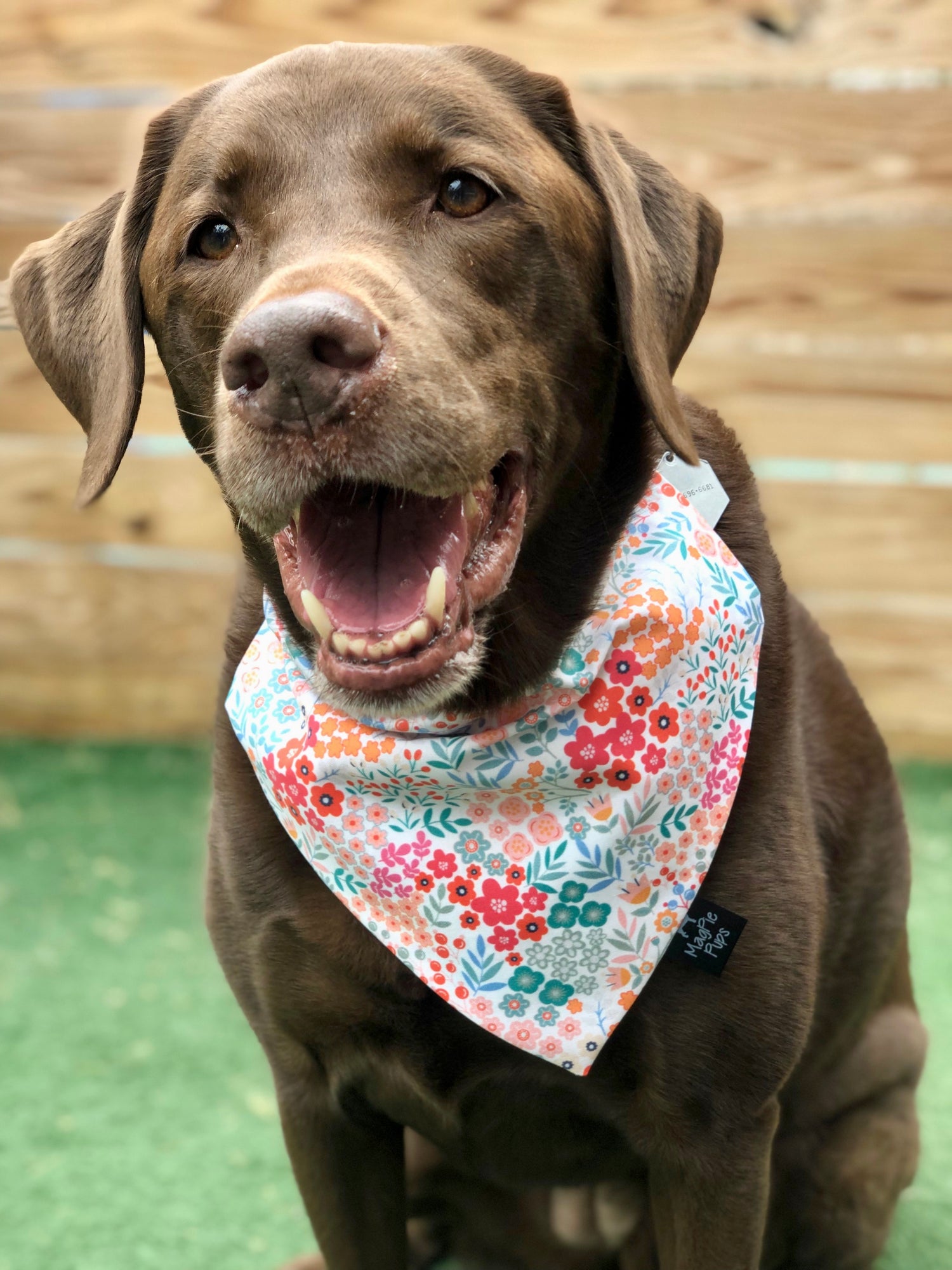 The same fabric is on the back and front, and design placement may vary on each bandana. These bandanas have openings between the front and the back of the bandana for a collar to slip through. This allows your pup to play freely without having anything tied around their necks. A collar is require to wear this bandana.