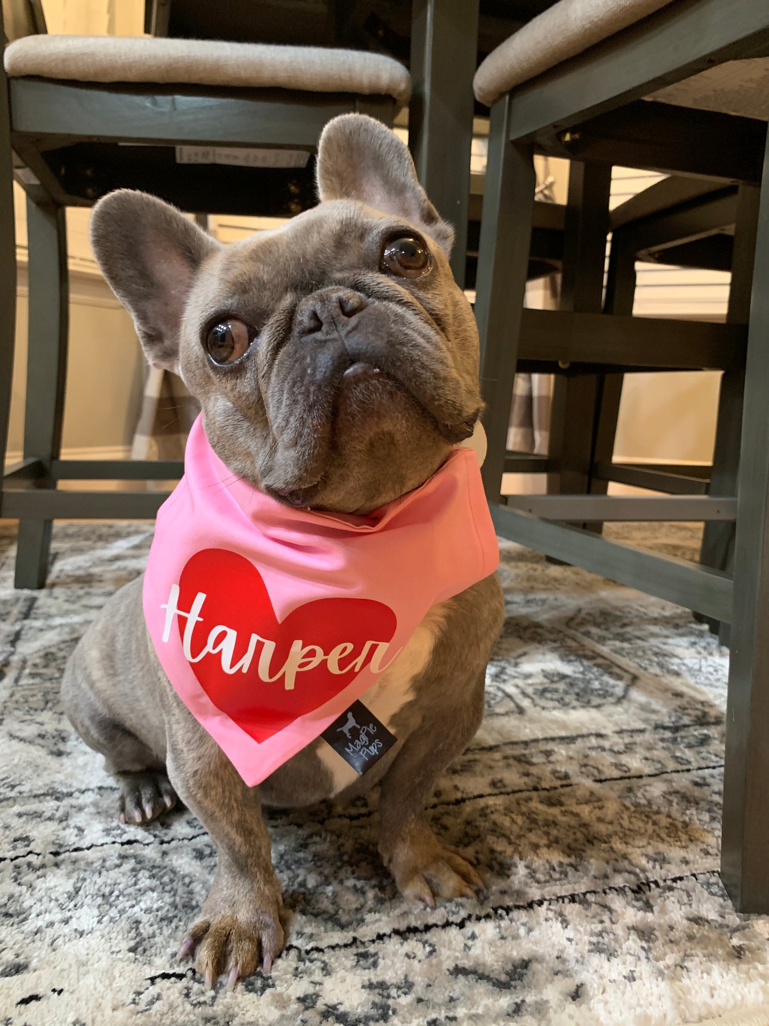 The same fabric is on the back and front, and design placement may vary on each bandana. These bandanas have openings between the front and the back of the bandana for a collar to slip through. This allows your pup to play freely without having anything tied around their necks. A collar is require to wear this bandana.