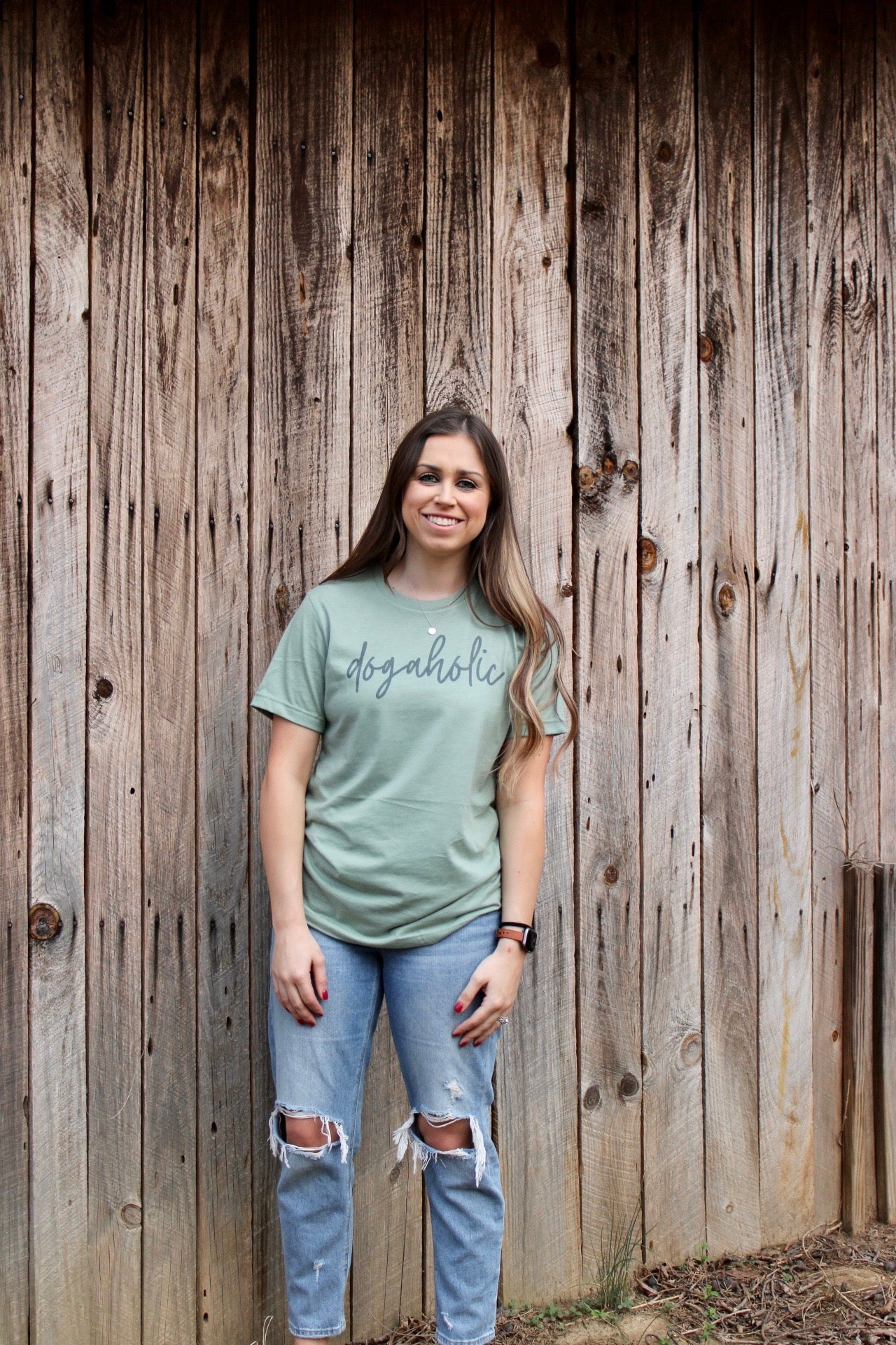 Match your pup in our "Dogaholic" shirt! This shirt is printed on a Sage colored Bella + Canvas 3001C short sleeve t-shirt.