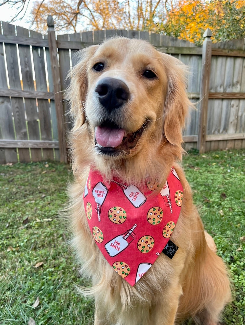 The same fabric is on the back and front, and design placement may vary on each bandana. These bandanas have openings between the front and the back of the bandana for a collar to slip through. This allows your pup to play freely without having anything tied around their necks. A collar is require to wear this bandana.