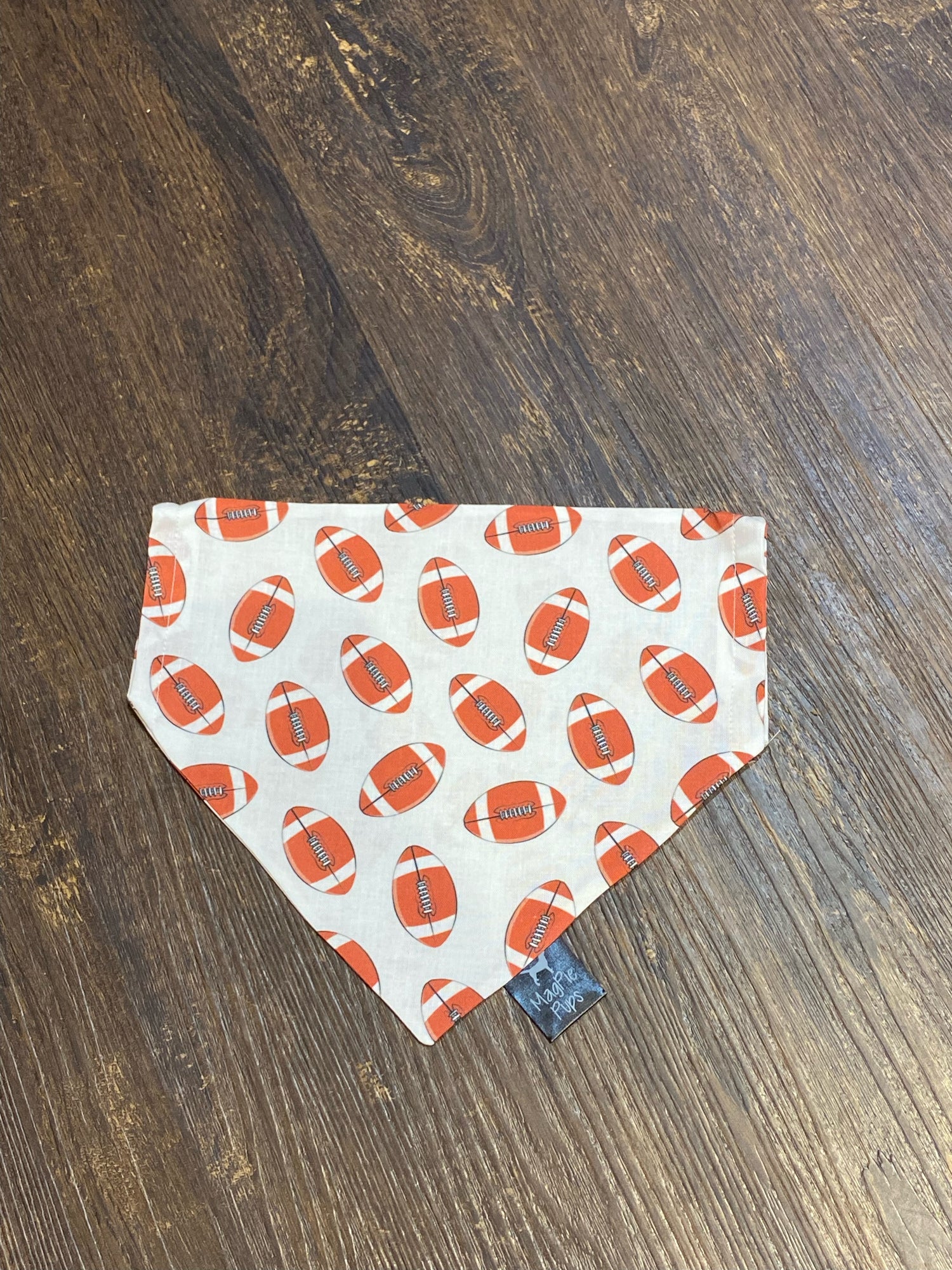 The same fabric is on the back and front, and design placement may vary on each bandana. These bandanas have openings between the front and the back of the bandana for a collar to slip through. This allows your pup to play freely without having anything tied around their necks. A collar is require to wear this bandana.