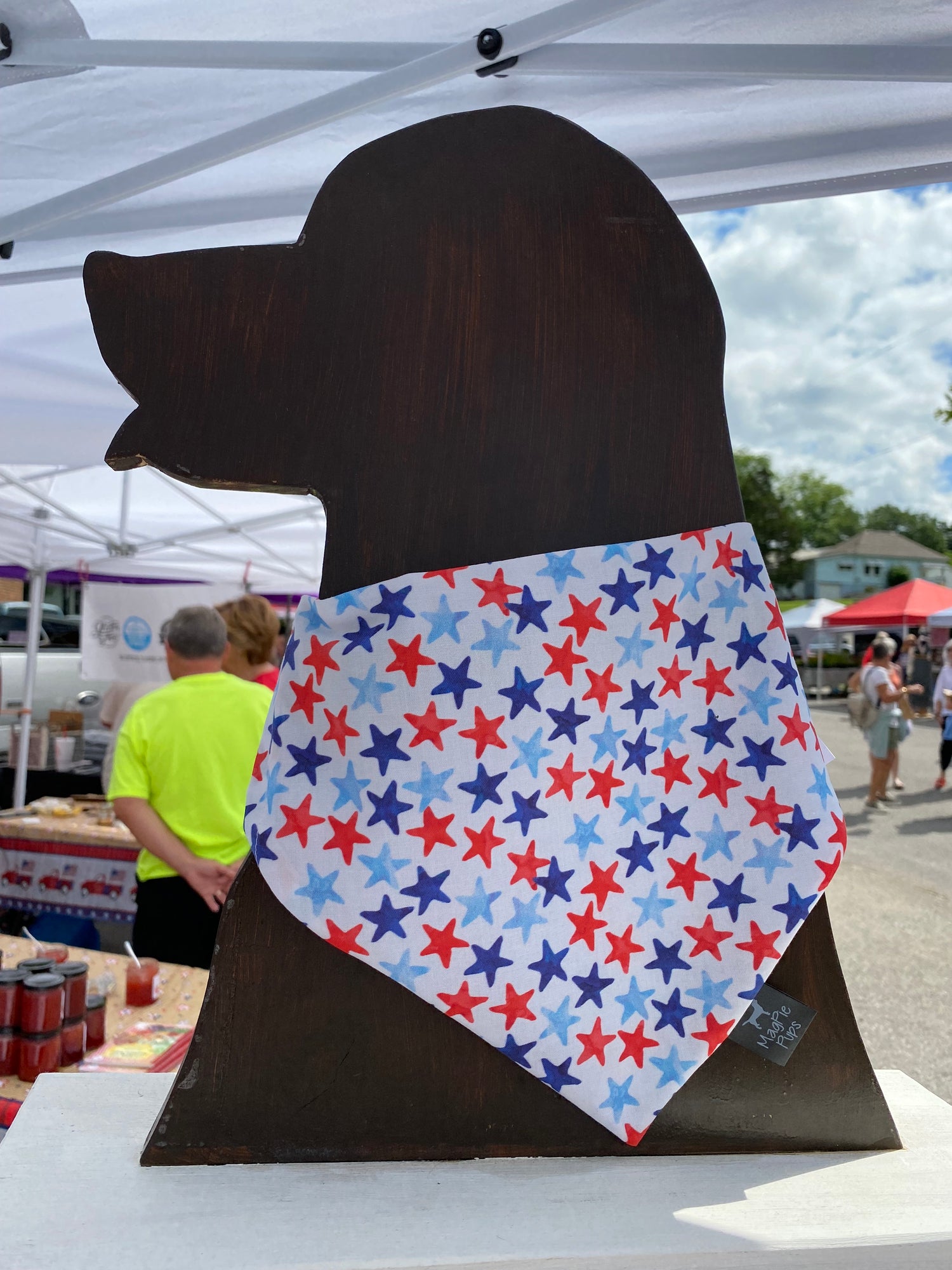 The same fabric is on the back and front, and design placement may vary on each bandana. These bandanas have openings between the front and the back of the bandana for a collar to slip through. This allows your pup to play freely without having anything tied around their necks. A collar is require to wear this bandana.